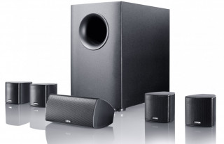 Uppgraderat 5.1 ljudsystem med små högtalare, rejäl ljudförbättring mot gamla modellen med b.l.a. bättre förstärkare i subwoofern. Högtalare i Blank design.